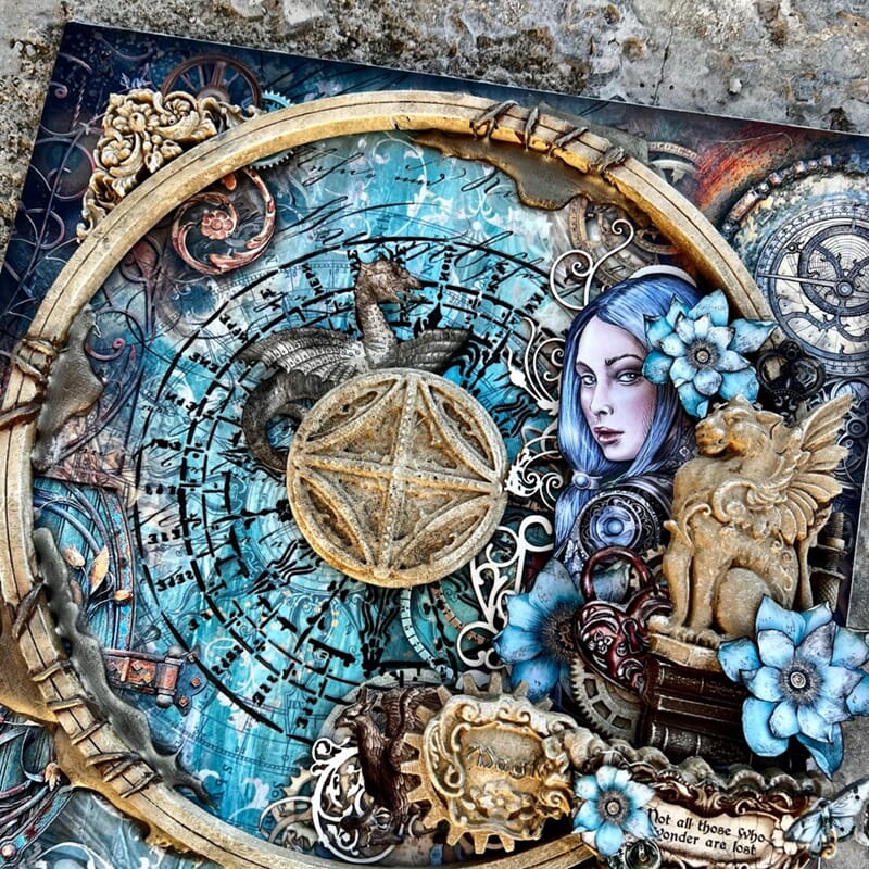 Antonis er kjent for sin mixed media stil, der han bruker mange forskjellige elementer på prosjektene sine. Elementer som leire støpt i Stamperia former, papir og mønsterark, utklipp og maling, medier og mye mer! Listen på ting vi skal bruke på kursene er lange, og under ser du alt vi lærer å bruke under dette kurset.