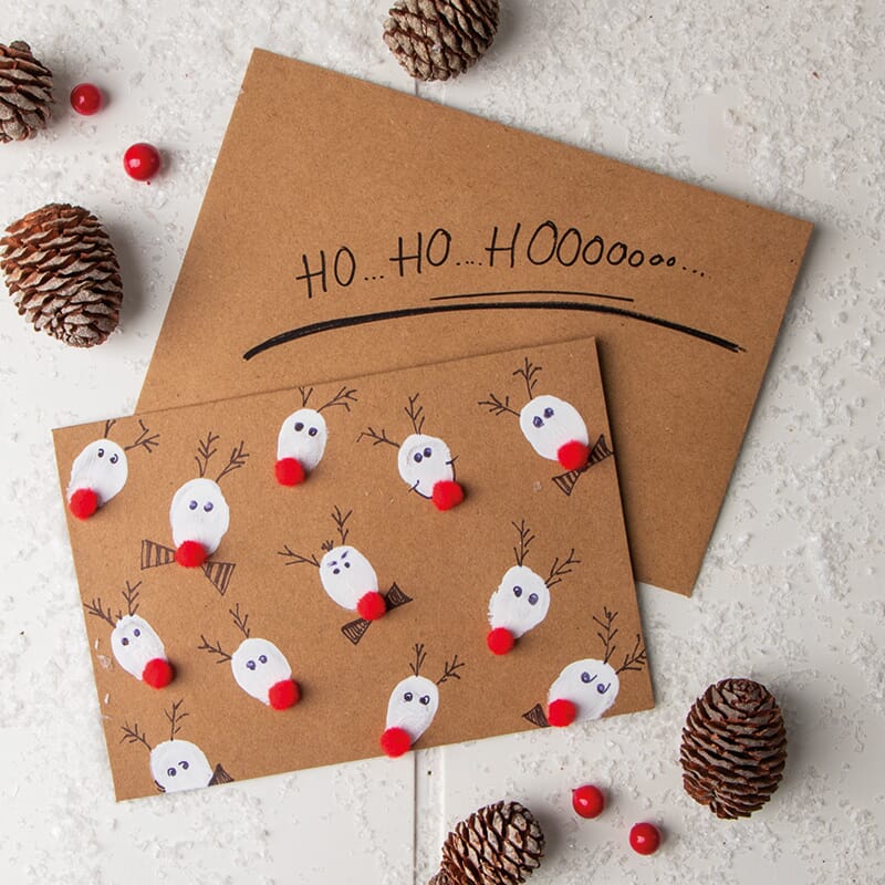 Lag personlige julekort med reinsdyr av fingeravtrykk