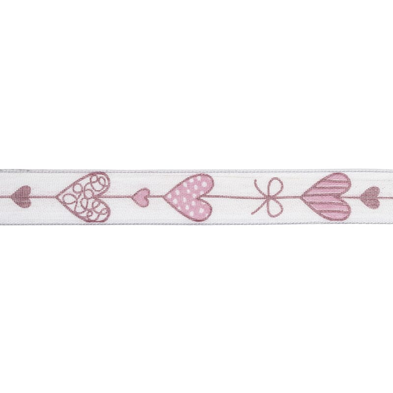 Dekorbånd - Hjertebånd, rosa, bredde 6 mm, metervare