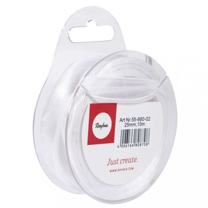 Dekorbånd fra Rayher i bredde 2,5 cm og lengde 10 meter. Organsa båndet kan brukes til det meste innen hobby, og alt fra kortlaging til dekor på lerret.