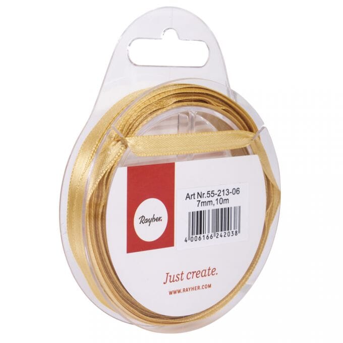 Satengbånd på 10 meters rull fra Rayher - finnes i mange farger og flere bredder.