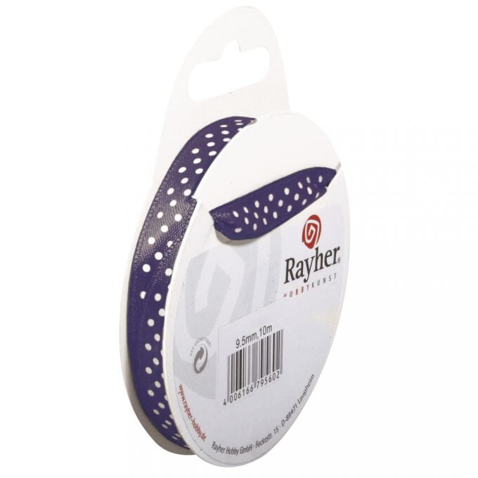 • Sateng bånd - Lilla med prikker, 9.5 mm x 10 meter