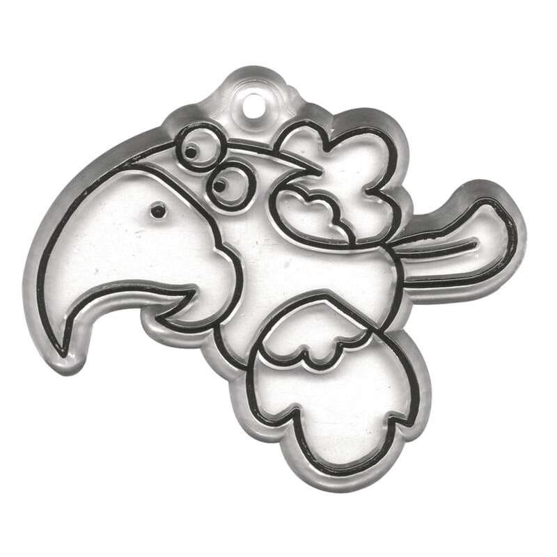 Morsomme figurer i akryl - transparent hardplast. Figuren har hull for oppheng. Figurene er delt inn med rom som er fremhevet med sorte streker, slik at motvet lett fremkommer. De egner seg derfor ypperlig til å dekorere med Window Color eller vindusmaling. Transparent hobbymaling eller tusjer gir også fin effekt. Figurene er mosomme å dekorere for barn, og er en fin aktivitet i barnebursdager, barnehager, ferie aktivitet for barn, etc. Lag søte små gaver, heng de opp i vindu, fest de på sekken, eller som vedheng på en gaveinnpakning. En morsom barnehobby!