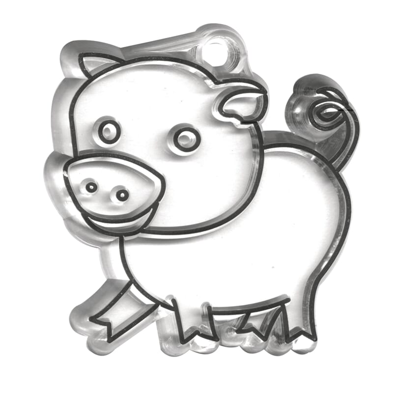 Figur i akryl - pig, 5,5x5,5 cm. Med hull for oppheng