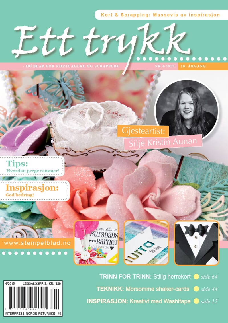 Norsk kortlaging og scrappe magasin for kreative sjeler som inneholder masse flott inspirasjon, tips og teknikker. I denne utgaven er Silje Kristin Aunan gjestedesigner med sine flott papirkreasjoner - i tillegg så får du masse inspirasjon på bruk av washitape på kort, shaker-cards og masse mer! Trinn-for-trinn herrekort og hvordan man kan prege rammer til kort.