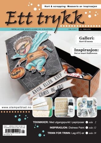 Oktober nummeret av Ett Trykk med Halloween tema, inspirasjon på papirposer og trinn for trinn kurs.
