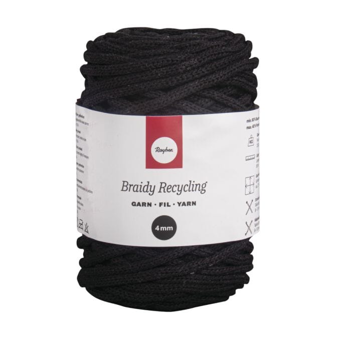Resirkulert garn - Sort, tykkelse 4 mm, 250 grarm