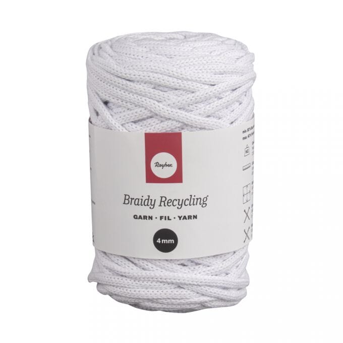 Resirkulert garn - White, tykkelse 4 mm, 250 gr