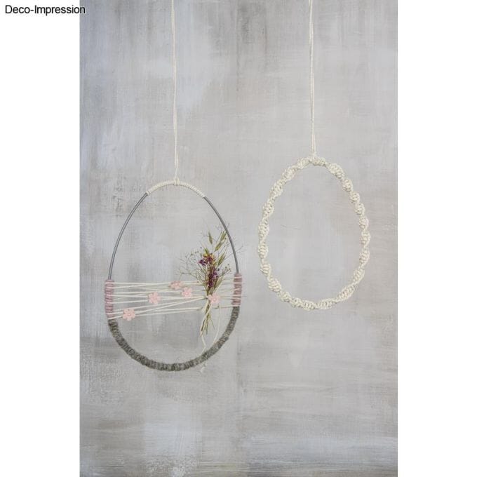 De kan dekoreres, vikles, knytes og pyntes akkurat slik du ønsker, og passer perfekt til makramé, drømmefangere, kranser, blomsterdekorasjoner, vinduspynt, borddekor og sesongprosjekter som påske- og adventskranser. De er også svært populære i bryllupsdekorasjoner, enten hengende eller som en del av bordpynten. Denne egge formen er super til å lage påskepynt og påskehobby med.