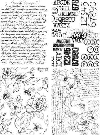 Pakken inneholder 4 unike design i monokrome toner, med 2 ark av hver – totalt 8 ark. Papiret er lett og tynt (23 gsm), noe som gjør det perfekt til decoupage og lag-på-lag teknikker.