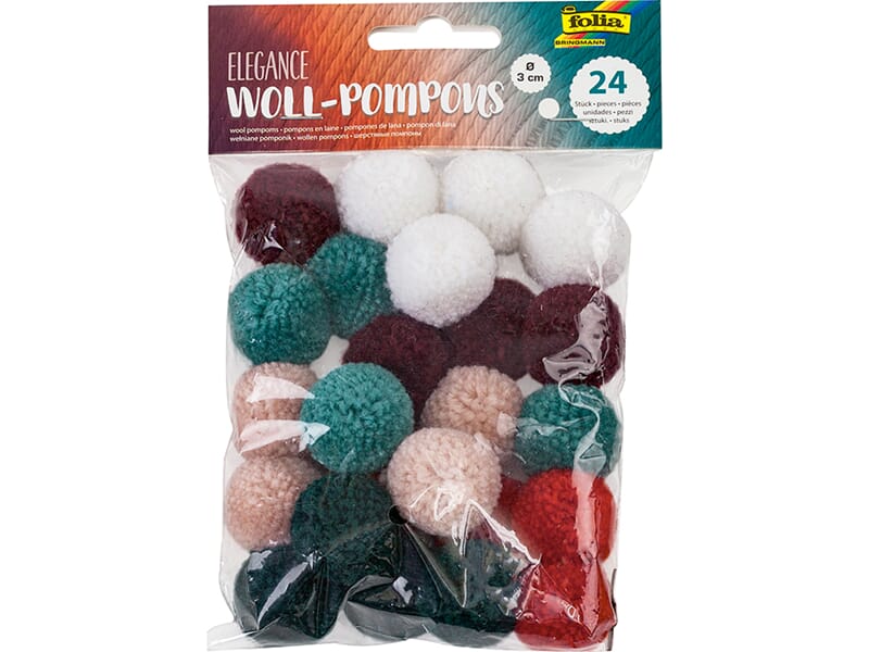 Søte pompoms til hobbyprosjekter og juleverksted. Disse er f.eks kjempe fine til å henge opp på en snor som dekor, eller lage små nisser av. Lag uroer og drømmefangere, eller bruk dem som del av en dekorasjon. Kan brukes til så å si alt av hobby.