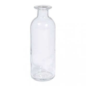 Lekker glassflaske og vase for tørkede blomster, DIY interiør og hobbyprosjekter. Flasken er helt slett, slik at den fint kan males og pyntes på de fleste måter. Flasken er 16,5 cm høy.
