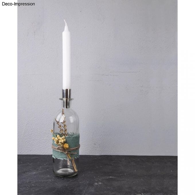 Lekker glassflaske og vase for tørkede blomster, DIY interiør og hobbyprosjekter. Flasken er helt slett, slik at den fint kan males og pyntes på de fleste måter. Flasken er 20 cm høy.