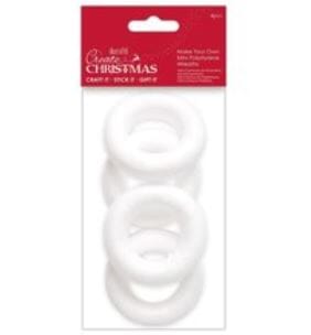 Mini isopor ringer fra Docrafts som kan dekoreres på mange forskjellige måter. Pynt med paljetter, eller lage en liten krans med papirpynt. Den kan også males med vannbasert hobbymaling og annen julepynt.