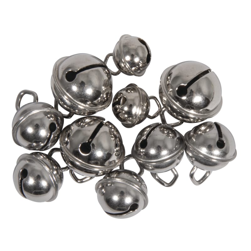 Bjeller - Sølvfarget metall, 3 størrelser, 10 stk