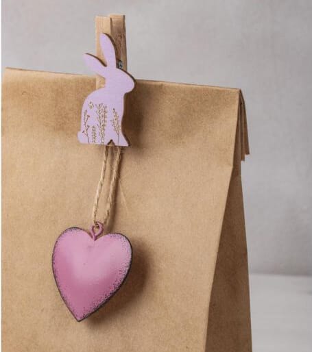 Innhold: 7 hjerteanheng i metall, 3,7 cm ø, farget på begge sider, med en delikat distresset brun kant. Ett hjerte hver i pastellfarger: oransje, hvit, lysegrønn, gul, rosa, fuchsia, turkis.