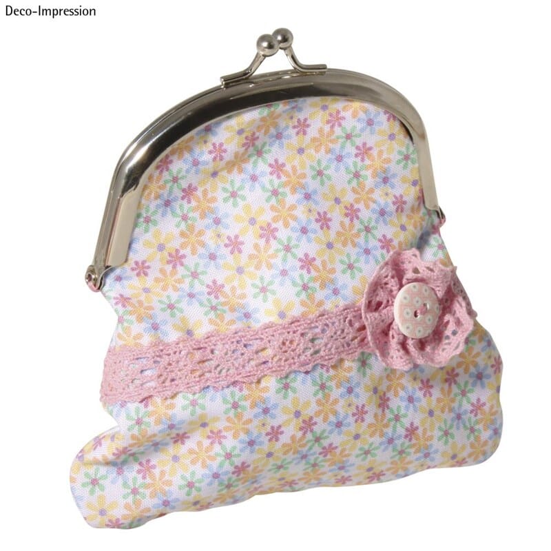 Buet bøyle til pung og liten veske i sølvfarget metall, størrelse 10.5 cm. Lag søte små vesker og punger i helt din egen stil, og bruk bøylen for sikker lukking.