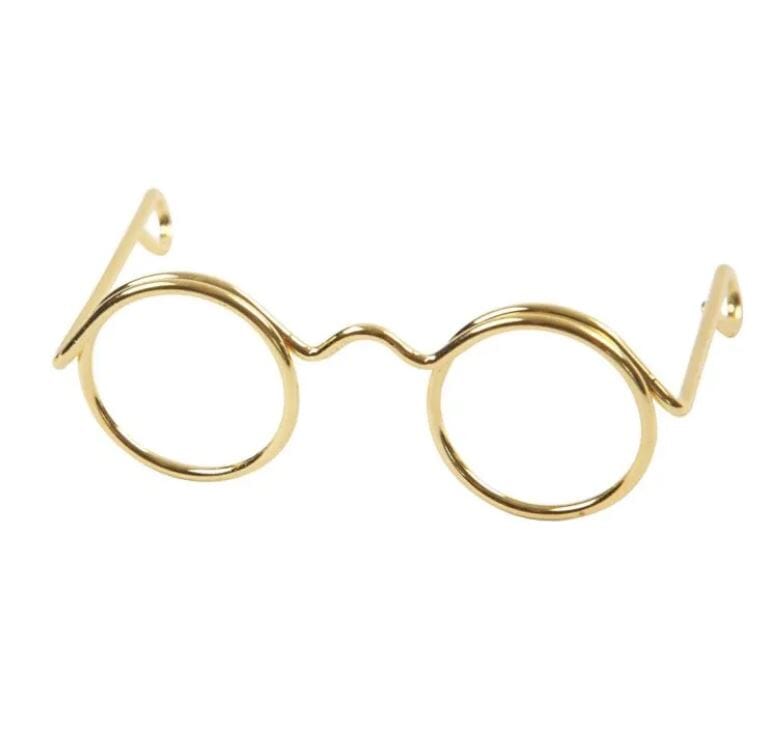 Dukkebriller av metall. Mål er avstand mellom stengene, og selve ringen er 13 mm. Det er 10 stk briller i pakken.