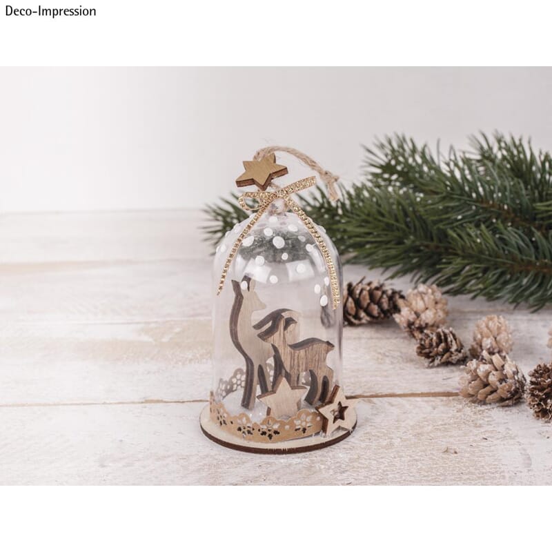Juleklokke med base - høyde 9 cm inkludert hamptråden - som kan dekoreres på mange måter, og disse julekuplene blir veldig fine med våre 3D-landskap med forskjellige motiv.