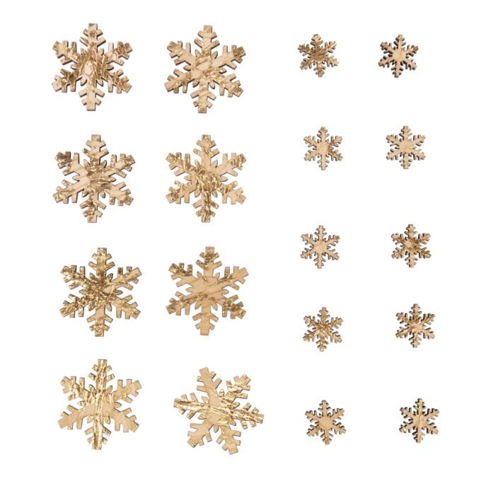Tredekor - Snøfnugg med gullfolie detaljer, 18 stk