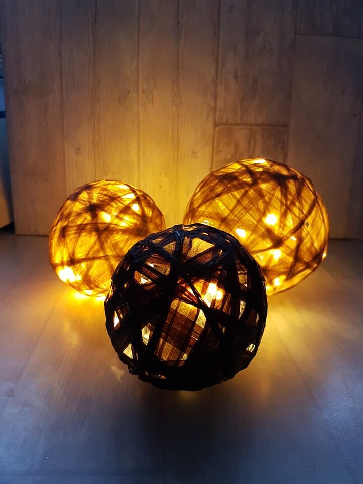 Kreativt tips! Bruk egnet lim og snurr basten rundt en ballong i ønsket størrelse, og lag en dekrativ ball som kan ha leddlys inni.