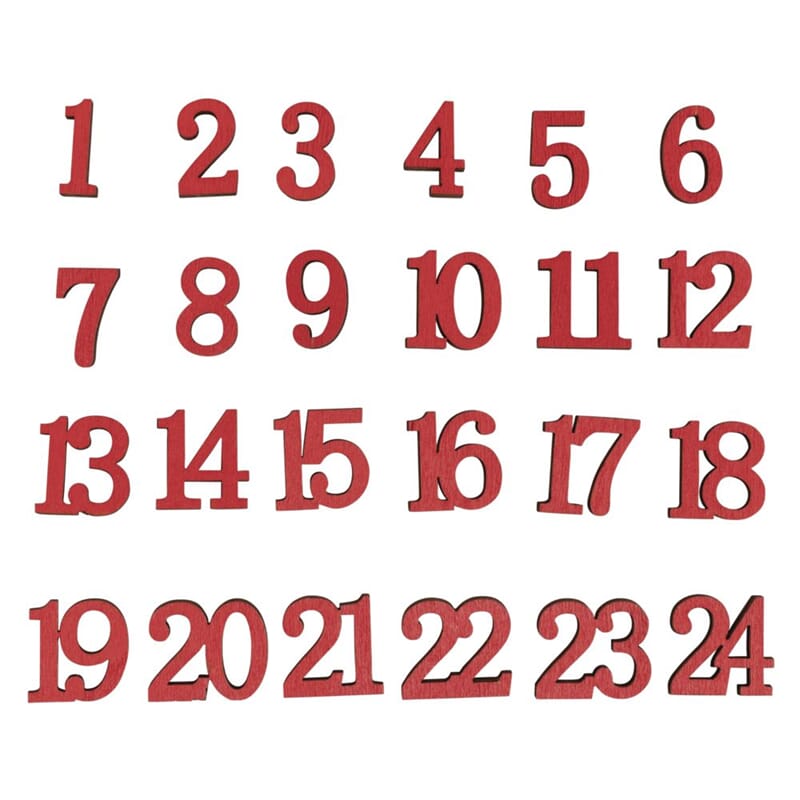 Adventskalender tall - Røde, str 20 mm, 24 stk