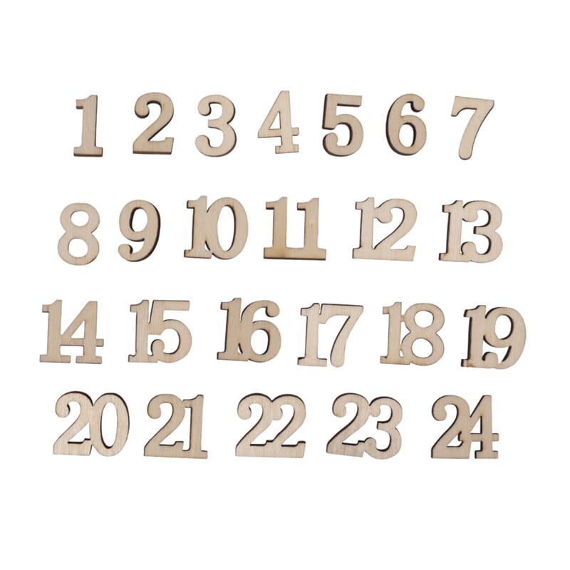 Adventskalender tall - Trehvite, str 17 mm, 24 stk