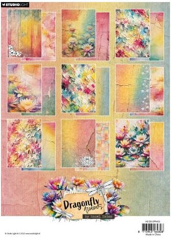 Vakker papirblokk fra Dragonfly dreams-kolleksjonen med stemningsfulle bakgrunnsark i herlige sterke farger og mønstre. Perfekt til scrapbooking, kortlaging og journaling. Inneholder 36 ark fordelt på 9 design (4 av hver), trykket på syrefritt og ligninfritt papir i 170 gsm kvalitet.