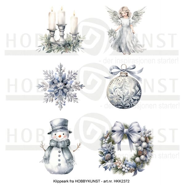 Klippeark fra HOBBYKUNST til kortlaging, planning og liknende papirprosjekt. Disse klippearkene klipper du selv ut og limer på et kort eller prosjekt. Vi klipper ofte med en liten 2 mm hvit kant rundt motivet som også gjør klippejobben mye enklere.