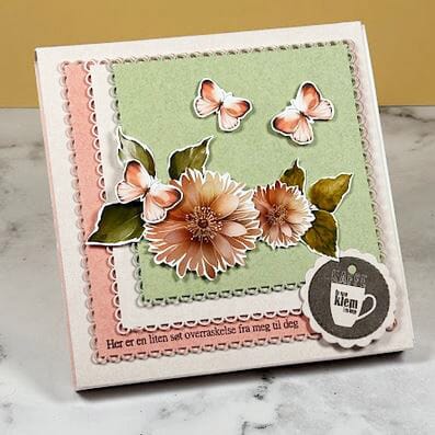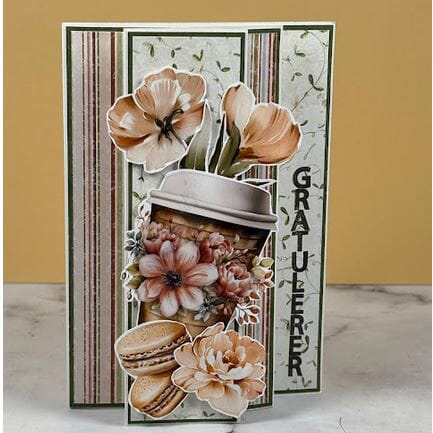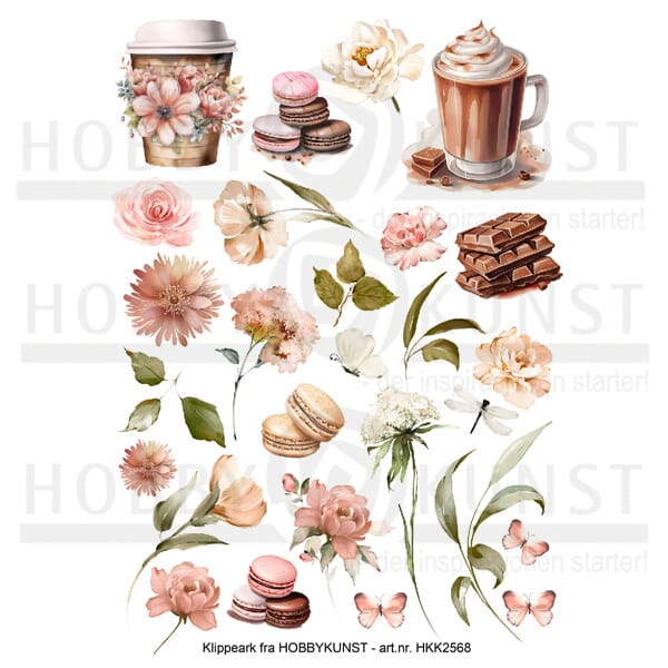 Vi har latt våre designere få lov til å velge ut motiver til et eget klippeark og først ut er Francas favoritter. Et ark fullt av blomster og kaffe motiver som kan settes sammen til flotte kort. Blomster og motiver klippes ut og kan enten brukes hver for seg eller lag-på-lag.