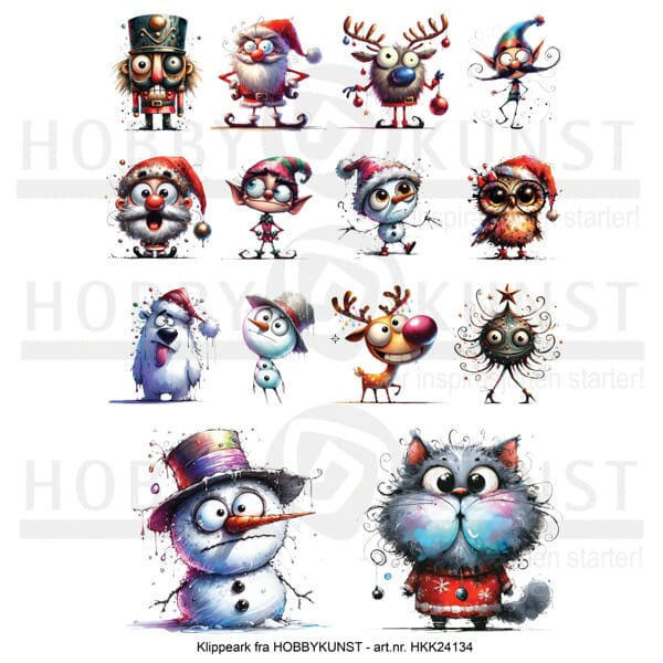 Klippeark fra HOBBYKUNST til kortlaging, planning og liknende papirprosjekt. Disse klippearkene klipper du selv ut og limer på et kort eller prosjekt. Vi klipper ofte med en liten 2 mm hvit kant rundt motivet som også gjør klippejobben mye enklere.