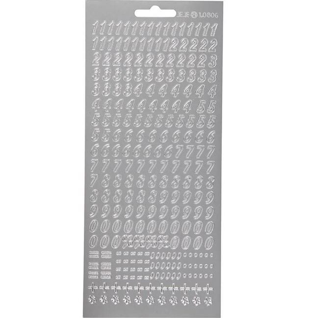 Bokstav klistremerker - Tall sølv, ark 10x23 cm