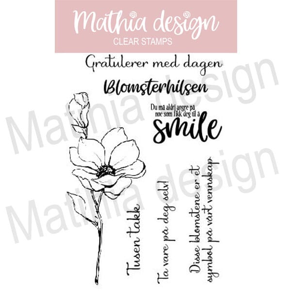 Mathia stempler er norske clearstamps av god kvalitet produsert i Europa med fokus på å ha fleksibilitet med motiv og tekster. Mange av platene inneholder store og små norske tekster som kan settes sammen på ulike måter.