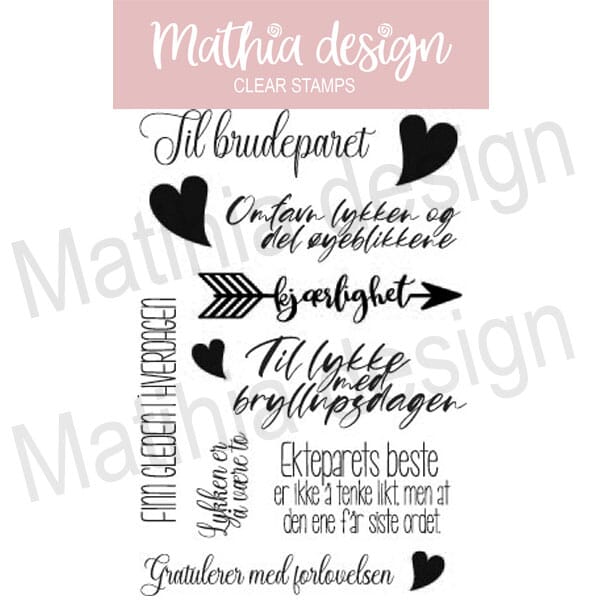 Mathia stempler er norske clearstamps av god kvalitet produsert i Europa med fokus på å ha fleksibilitet med motiv og tekster. Mange av platene inneholder store og små norske tekster som kan settes sammen på ulike måter.