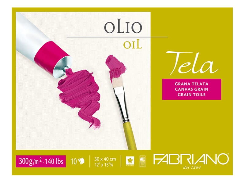 Blokk fra Fabriano med 300 g papir spesielt preparert for maling med oljefarger. Syrefritt papir med svakt strukturert overflate. Limt på fire sider.