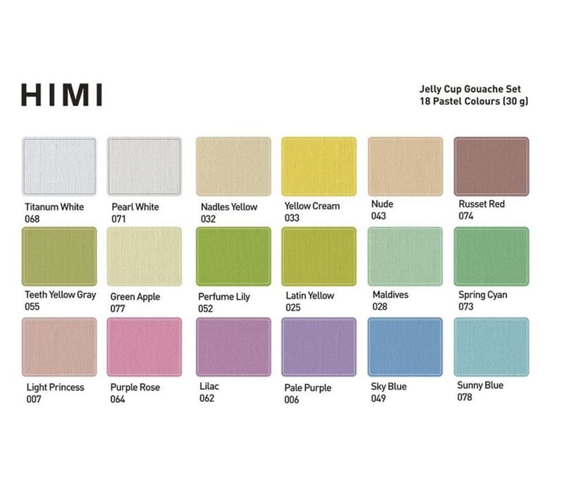 • HIMI - Purple Jelly Cup Gouache Sett 18stk, 3 pensler