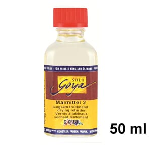 PAINTING MEDIUMS FOR OIL PAINTING - SOLO GOYA Painting Medium 2 Drying Retarder 50 ml - malemedium som blandes i oljemalingen for å forlenge tørketiden. Gjør at man kan gjøre våt-i-våt teknikk over et par dager. Inneholder: linolje, olje og whitespirit. Produktet har sikkerhetskork og er produsert i Tyskland. Fareidentifikasjon - H226 Brannfarlig væske og damp, H304 Kan være dødelig ved svelging om det kommer ned i luftveiene, H336 Kan forårsake døsighet eller svimmelhet.