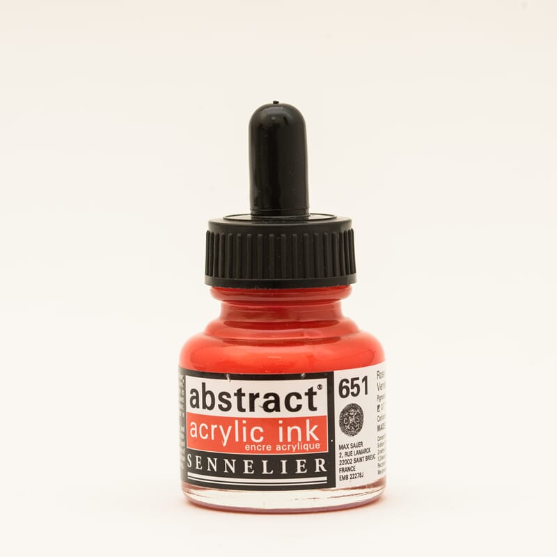 Høypigmentert akryl ink fra Sennelier som er smidig og intens farge som er ypperlig til mange forskjellige teknikker. Bruk fyllepenn og rissepen, eller bruk malingen på lerret, i art journal eller liknende.