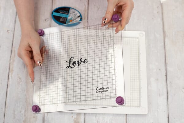 Den innebygde målegriden gjør det enkelt å plassere prosjektet nøyaktig, og den avtakbare gummimatten med klissete overflate holder papiret stabilt under hele prosessen.