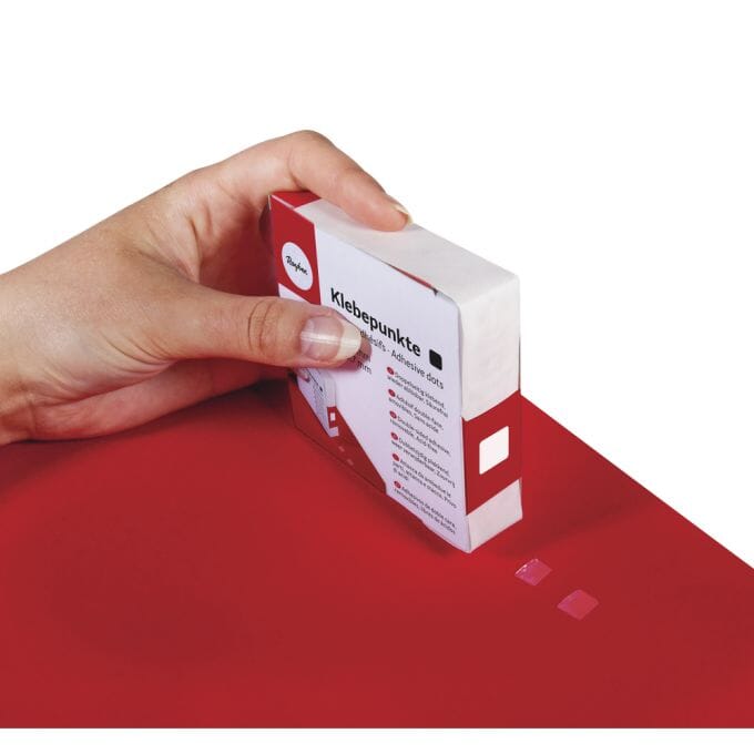 Limdotter i praktisk papir dispenser.