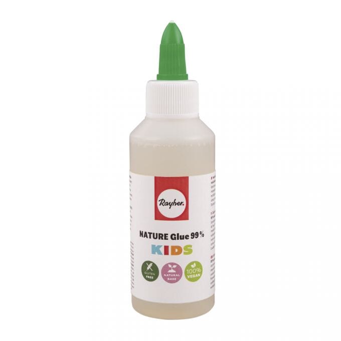 Rayher lim fra 99% naturlige råvarer, glutenfri og 100% vegan. Dette limet for barn er tilsatt en ufarlig bitter smak, kommer i en resirkulert plast flaske med detaljtip og påføringsdel som flater ut limet. Limet egner seg for papir, papp og liknende lettmaterialer som kork, tre og isopor. Limet vaskes enkelt bort med kaldt vann eller vaskemaskin om man får det på klær eller uønskede steder.
