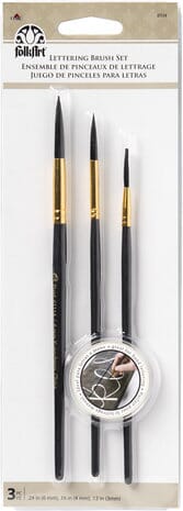 Gi prosjektene dine et personlig preg med FolkArt Lettering Brush Set, perfekt til håndmalt skrift og detaljerte penselstrøk. Settet inneholder tre syntetiske pensler med lange, fleksible, flat-tippede hår som gjør det enkelt å male jevne linjer og rene kanter – ideelt sammen med FolkArt Brush Lettering Paint.