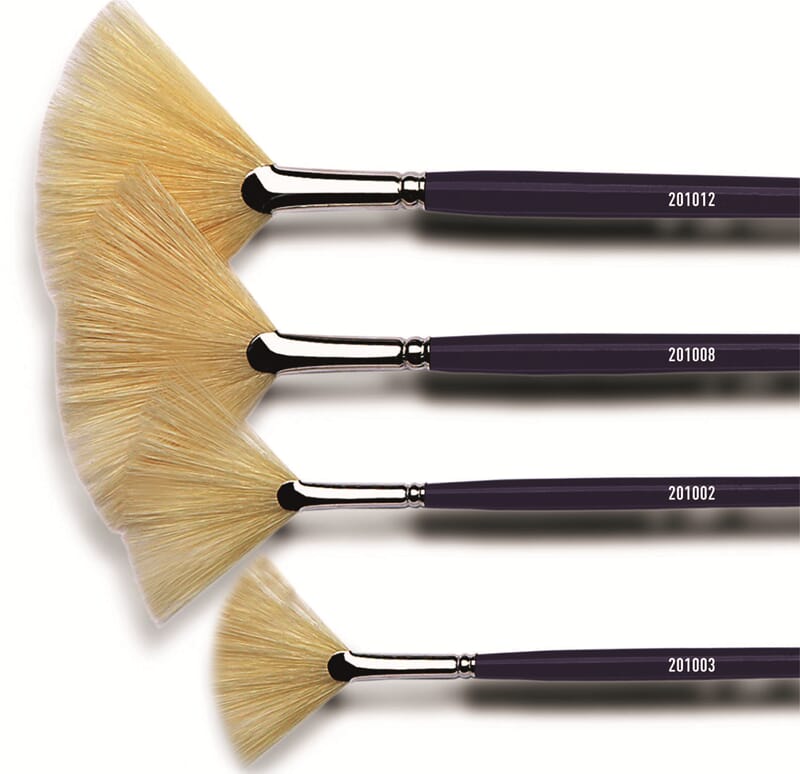 SOLO GOYA Fan Brush, Chinese bristle size 3 (so.220/3) - viftepensel til forskjellige malingsteknikker. Denne viftepenselen har kinesisk svinebust hår av topp kvaltiet med metallfester som er nikkelbelagte og motstansdyktige. Penselen har et 25 cm langt skaft. Kan brukes til oljemaling, akrylmaling og akvarellmaling. Brukes til teknikker som blending, graining, male gress og natur effekter og elementer, m.m.