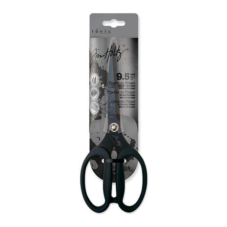Tim Holtz Titanium Shears 9.5 inch er en kraftig, presis og slitesterk saks utviklet for alle typer hobby- og mixed media-prosjekter. De titanbelagte bladene er ekstra robuste, motstandsdyktige mot rust og korrosjon, og gir lang levetid ved hyppig bruk.