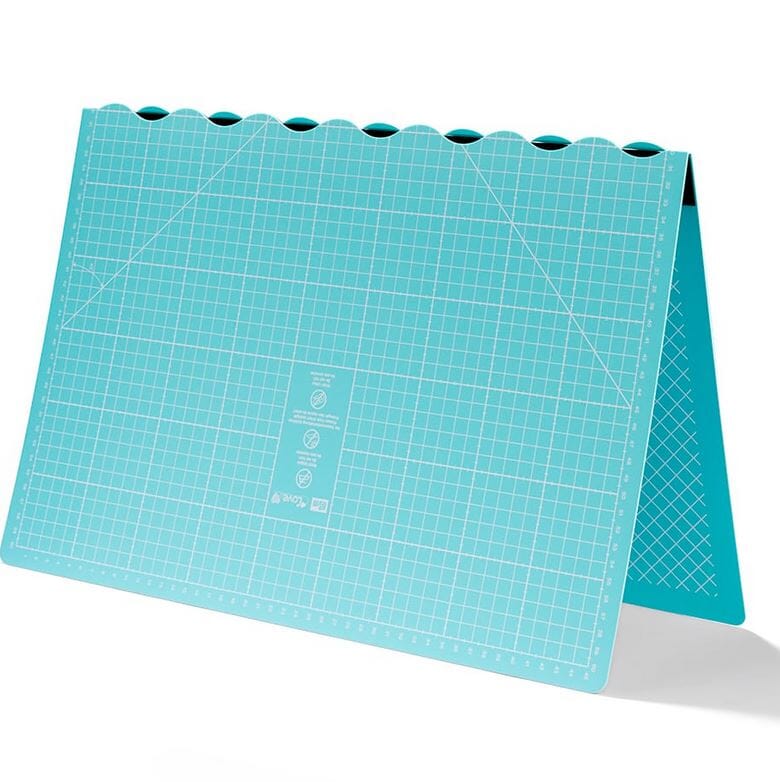 Undersiden er trykket med et tynt antisklibelegg som gjør at matten ligger stabilt på arbeidsbordet når du kutter stoff eller andre materialer. Den metriske skaleringen gjør det enkelt å måle og kutte nøyaktig. Den friske mintfargen gir samtidig et fint og inspirerende innslag på sybordet.