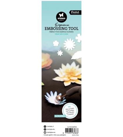 Ergonomisk embossingverktøy som er perfekt til forming og preging av blomster og andre detaljer i papir og kartong. Den avrundede 12 mm tuppen gir jevne og myke former, og det komfortable grepet gjør verktøyet behagelig å bruke, også over lengre tid. Et nyttig verktøy til kortlaging, scrapbooking og annen papirhobby hvor du ønsker ekstra dimensjon og liv i motivene.