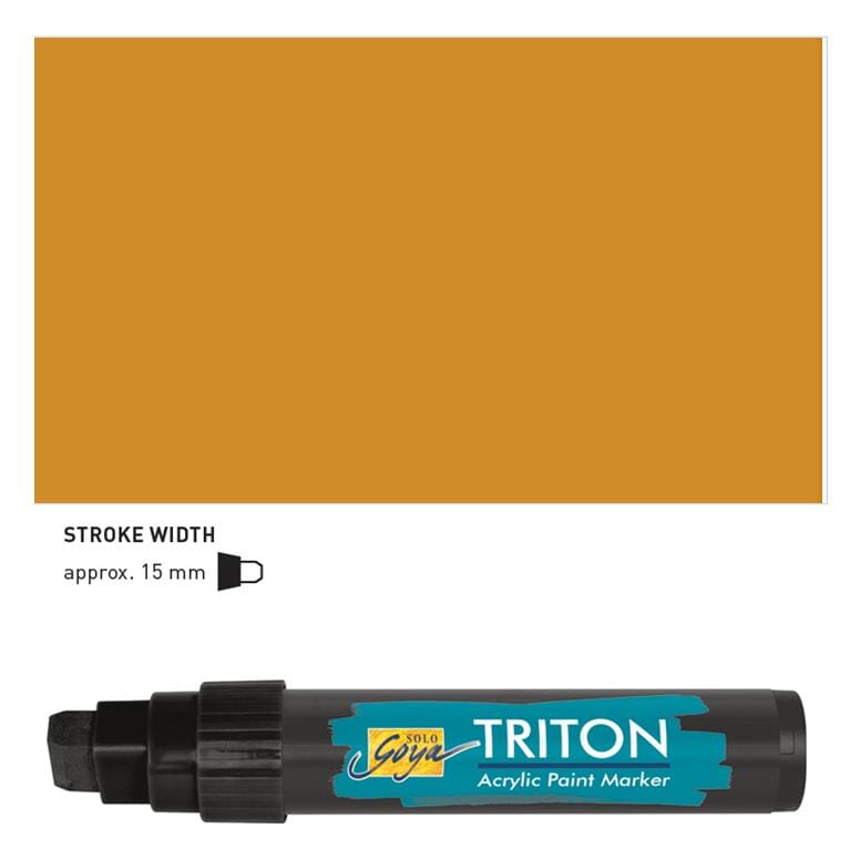 SOLO GOYA Triton Acrylic Paint Marker er en kunstner akrylmaling i tusj utgave. En akryl tusj som har de samme egenskapene som Triton akrylmaling, og de passer meget godt å brukes sammen. Akryltusjen er enkel å bruke, og gir også muligheten for rask maling og fargelegging uten søl. Fargene er dekkende, og matte etter tørking. Det er sterk farge intensitet, og lysekte pigmenter. Akryltusjene har en god spiss som kan skiftes ut og er lett å rengjøre. Ventilsystemet sørger for en jevn og eksakt fargeflyt. Triton akryl tusj er egnet for underlag som papir, lerret, kartong etc. Vær bestandig på sugende underlag.