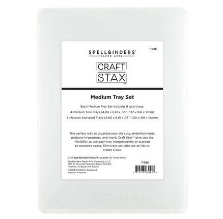 Craft Stax er perfekt for organisering av utstansede former, dies, pynt, smådeler og prosjekter under arbeid. Brettene er spesielt utviklet med die cutting i tankene og egner seg ypperlig til å oppbevare små dies, maler og utstansede elementer trygt og oversiktlig. Alt holdes samlet, beskyttet – og enkelt å ta med seg.