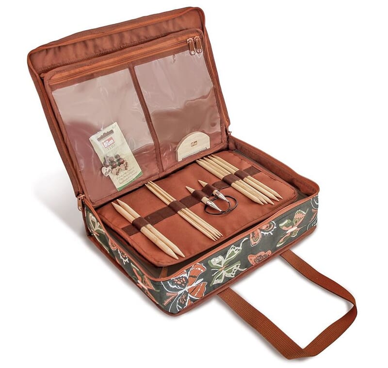 Genial oppbevaringsveske fra Prym til hobbyutstyr, og som rommer 7 lommer på innsiden og 10 strikkholdere. Lommene har transparent front, slik at man ser hva som er i lommene og de har forskjellige størrelser som gjør at man kan oppbevare mye forskjellig. Kjempe fint veske å bruke på f.eks kreativ treff.