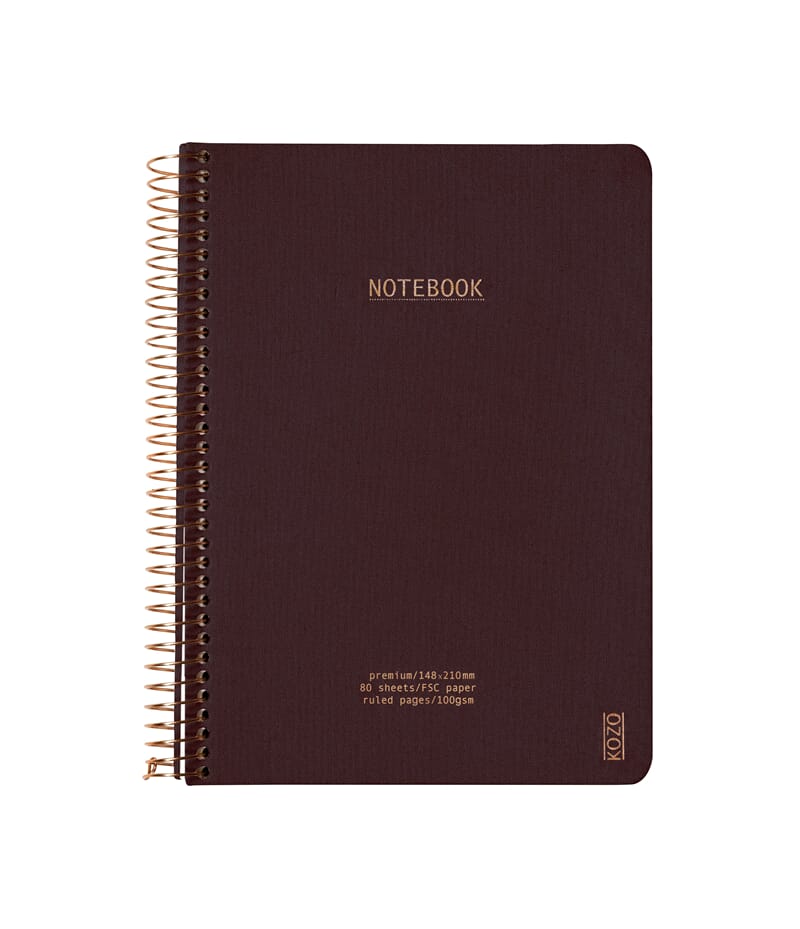 KOZO Premium-notatboken er definitivt en av de stiligste notatbøkene på markedet. Det robuste lerretsomslaget med vakre bronsedetaljer og den frekke, store spiralen, også i bronse, gjør den perfekt til å skrive og ta notater i fanget eller stående uten støtte. Og selvfølgelig er den et vakkert innslag på skrivebordet. Å skrive på det kremfargede 100 g-papiret gir en luksuriøs følelse. Alle de 80 sidene i notisboken har en datolinje øverst til høyre - enkelt og praktisk. Passer til alle andre skrivebordsprodukter fra KOZO i samme fargenyanser.